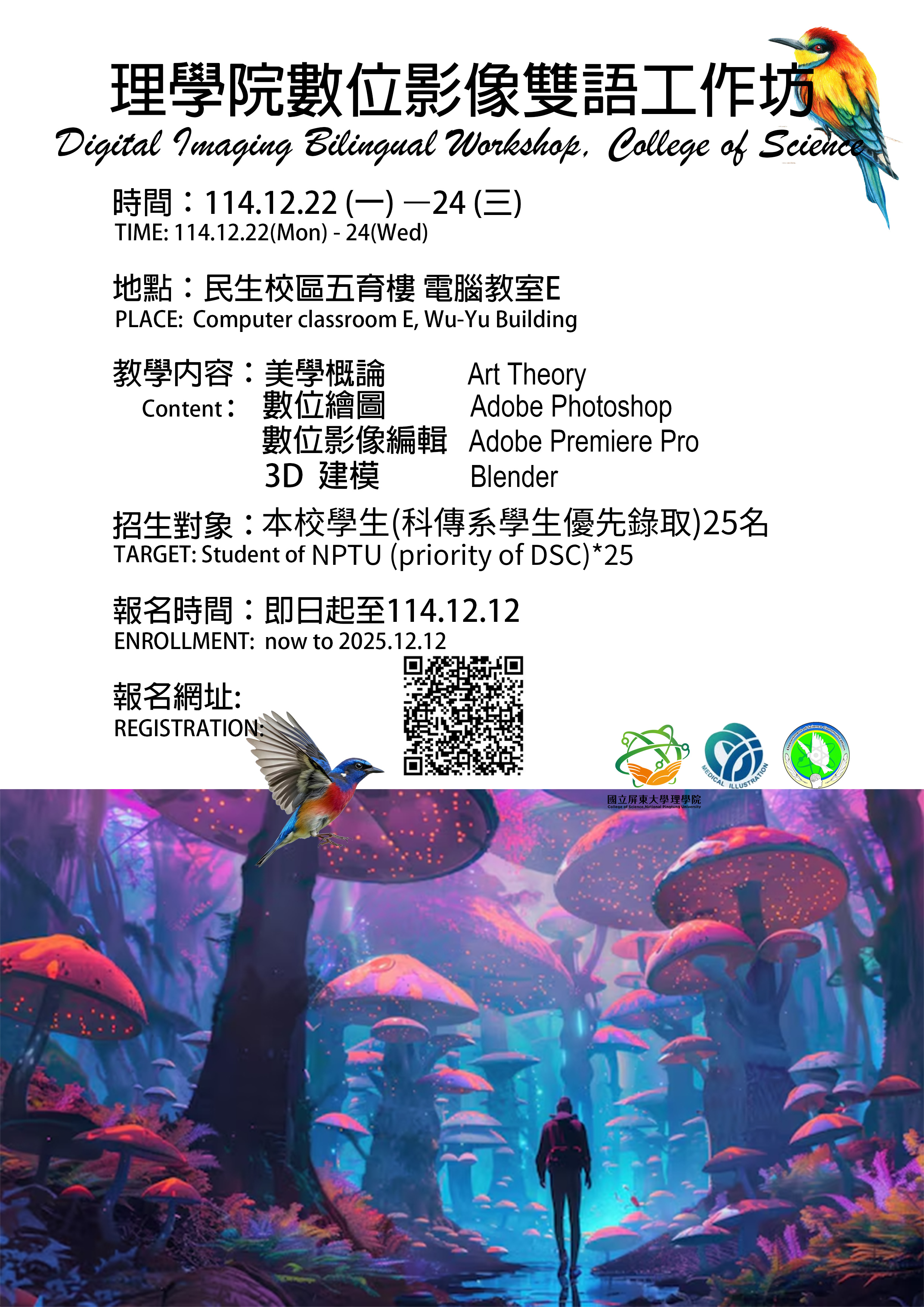 【活動資訊】錄取名單-理學院數位影像雙語工作坊Digital Imaging Bilingual Workshop, College of Science