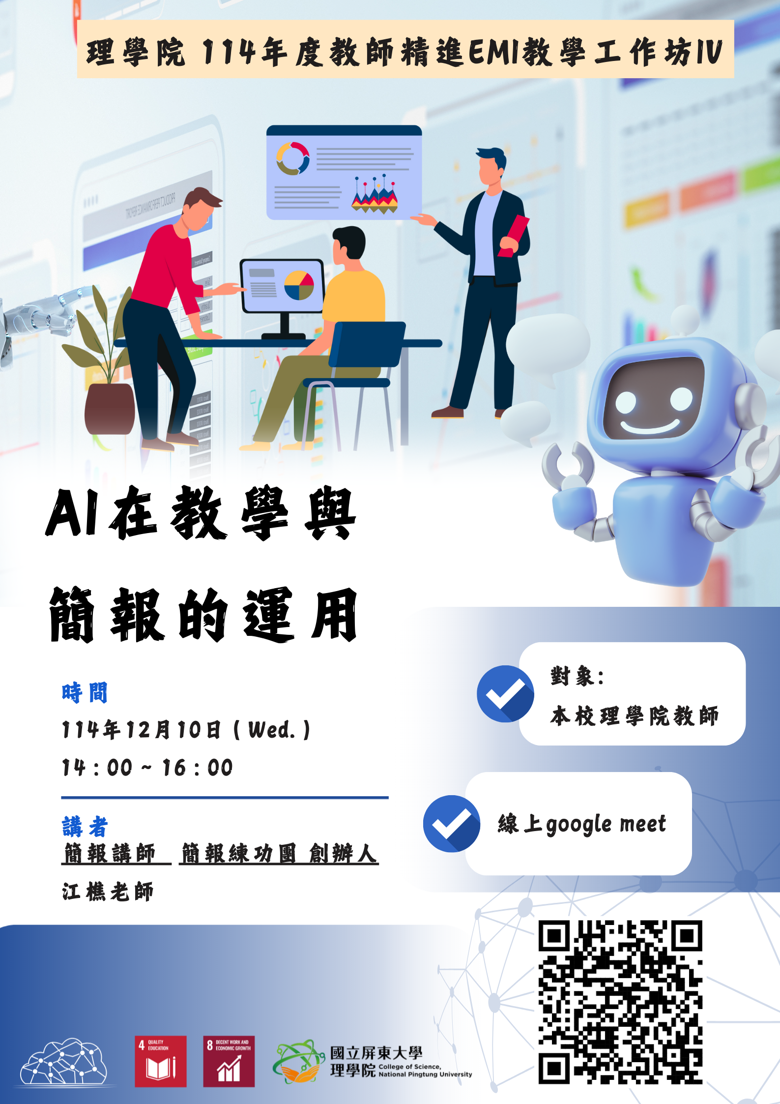 【理學院活動資訊】{活動報名}理學院114年度教師精進EMI教學工作坊IV-AI在教學與簡報的運用